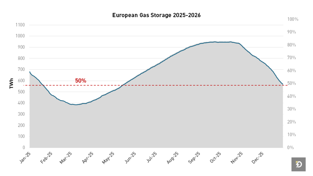 La combinación de tensiones geopolíticas, niveles de almacenamiento bajos y un invierno más exigente ha reintroducido volatilidad. Europa sigue siendo vulnerable en los meses de mayor consumo.