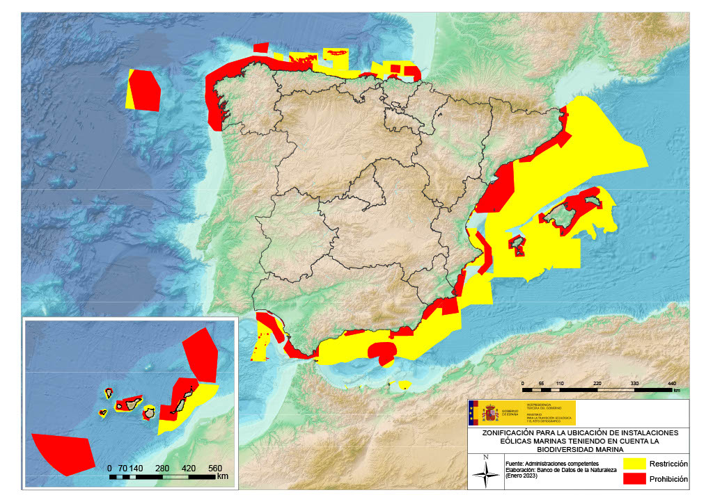 Fuente: Miteco -Mapa de zonificación para la ubicación de instalaciones eólicas marinas.