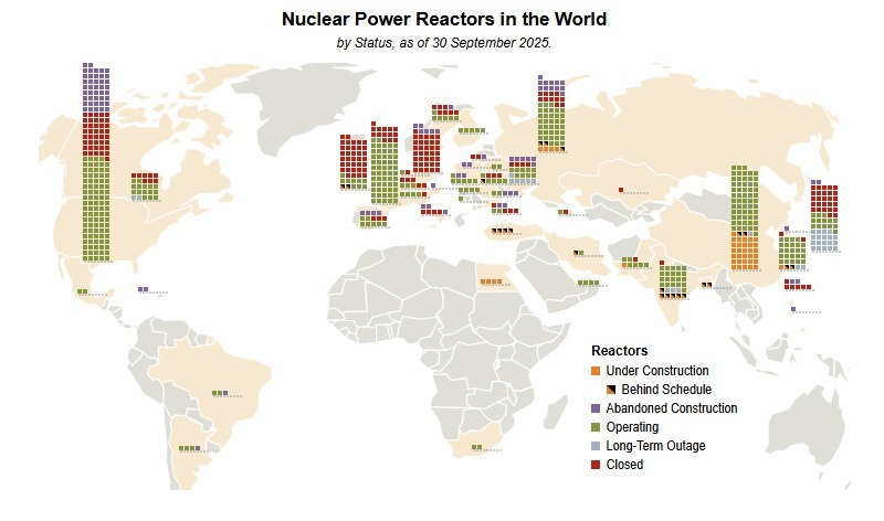 Fuente: World Nuclear Industry Status Report, 1/10/2025, https://www.worldnuclearreport.org/reactors.html#tab=iso;status=C