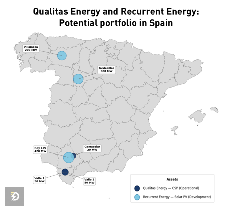 Recurrent Energy no cuenta aún con activos en operación en España. Su exposición en el mercado ibérico es íntegramente de naturaleza constructiva o en desarrollo, aunque con un grado de madurez elevado en los proyectos más avanzados.